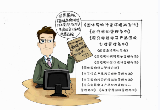 我國(guó)圍繞《固體廢物污染環(huán)境防治法》,先后出臺(tái)了《醫(yī)療廢物管理?xiàng)l例》《危險(xiǎn)廢物經(jīng)營(yíng)許可證管理辦法》《廢棄電器電子產(chǎn)品回收處理管理?xiàng)l例》等3項(xiàng)法規(guī)和《國(guó)家危險(xiǎn)廢物名錄》《危險(xiǎn)廢物轉(zhuǎn)移聯(lián)單管理辦法》《危險(xiǎn)廢物出口核準(zhǔn)管理辦法》《固體廢物進(jìn)口管理辦法》《電子信息產(chǎn)品污染控制管理辦法》《電子廢物污染環(huán)境防治管理辦法》《廢棄電器電子產(chǎn)品處理資格許可管理辦法》《再生資源回收管理辦法》等多項(xiàng)部門(mén)規(guī)章。