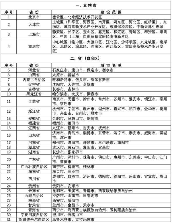 4月24日,生態(tài)環(huán)境部會同有關(guān)部門確定了“十四五”時期開展“無廢城市”建設(shè)的城市名單(如上表)。