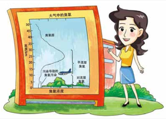 臭氧普遍存在于從地面到50千米的地球大氣中,其中大部分集中在距離地面10-30千米的平流層中,僅有10%左右的臭氧存在于距離地面較近的對(duì)流層大氣中。