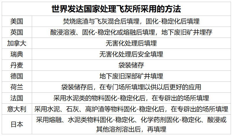 中國(guó)環(huán)保網(wǎng)盤點(diǎn)總結(jié)了當(dāng)前世界上幾大發(fā)達(dá)國(guó)家對(duì)飛灰的處理處置方法: