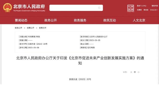 9月8日,北京市人民政府辦公廳關(guān)于印發(fā)《北京市促進(jìn)未來產(chǎn)業(yè)創(chuàng)新發(fā)展實(shí)施方案》的通知,下稱《方案》。