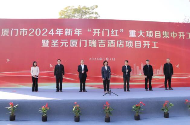 1月2日上午,廈門市2024年新年“開門紅”重大項目集中開工暨圣元廈門瑞吉酒店項目開工儀式在兩岸區(qū)域性金融中心片區(qū)順利舉行。副市長張志紅出席開工儀式并宣布項目開工。