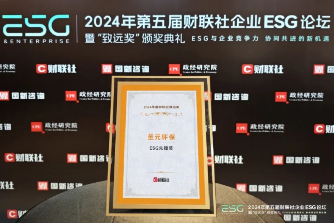 11月29日,2024年第五屆財(cái)聯(lián)社企業(yè)ESG論壇在北京舉行。圣元環(huán)保股份有限公司(簡稱“圣元環(huán)?!?,股票代碼:300867.SZ)獲評2024年度財(cái)聯(lián)社致遠(yuǎn)獎·ESG先鋒獎。