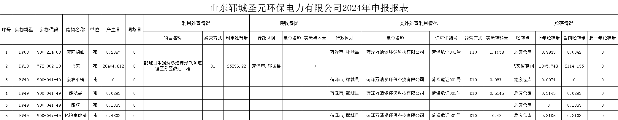 鄆城圣元危廢信息公示