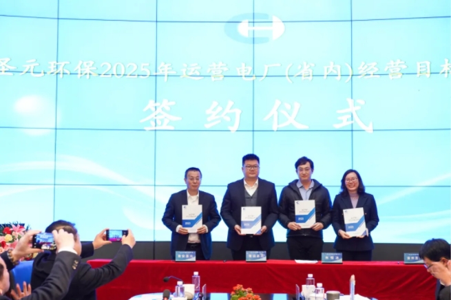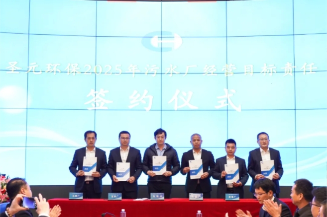 簽約儀式環(huán)節(jié),朱恒冰總經(jīng)理分別與運(yùn)營(yíng)電廠、運(yùn)營(yíng)水廠領(lǐng)導(dǎo)班子簽訂2025年度經(jīng)營(yíng)目標(biāo)責(zé)任書。這一紙“軍令狀”,承載著沉甸甸的責(zé)任和使命,是對(duì)各責(zé)任主體新年工作的期望和要求,也是對(duì)公司未來(lái)發(fā)展的堅(jiān)定承諾。