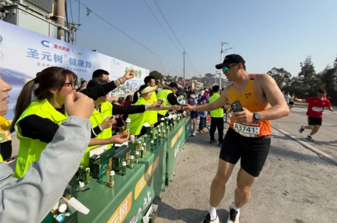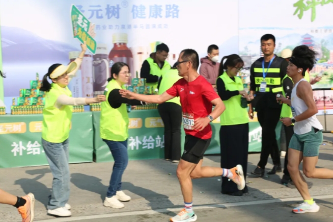 “加油,加油!”元氣小樹能量補給站邊,來自圣元的加油團毫不吝嗇贊美、鼓勵,為來自各地的跑友送上最熱情的助力,并為參賽者分發(fā)補給品——60mL便攜裝元氣小樹?;撬崮芰匡?,富含?;撬?、維生素B族等成分,護航參賽者保持良好狀態(tài)、圓滿完賽。